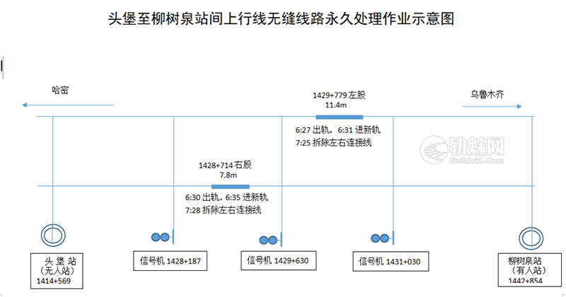 (1)电气化自动闭塞区段在两个轨道电路区段同时更换两股钢轨;