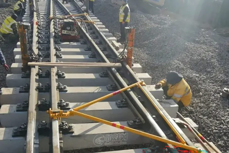 每组道岔使用3付道岔框架固定架,分别安装在转辙部分、导曲部分,将道岔尺寸固定后,形成一个稳定的刚性整体,使道岔在移动中保持框架稳定、不变形。