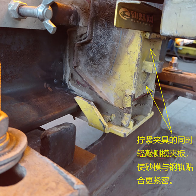 2.安装侧模夹板时,对侧模夹板轨腰部位轻轻敲击,使侧砂模与钢轨贴合更严密。󠄐󠅅󠄹󠄴󠄪󠄾󠅟󠅤󠄐󠄼󠅟󠅗󠅙󠅞󠄬󠅒󠅢󠄟󠄮󠇘󠆭󠆘󠇙󠆝󠅵󠇗󠆭󠆁󠄐󠇗󠅹󠅸󠇖󠆍󠅳󠇖󠅹󠅰󠇖󠆌󠅹󠄬󠅒󠅢󠄟󠄮